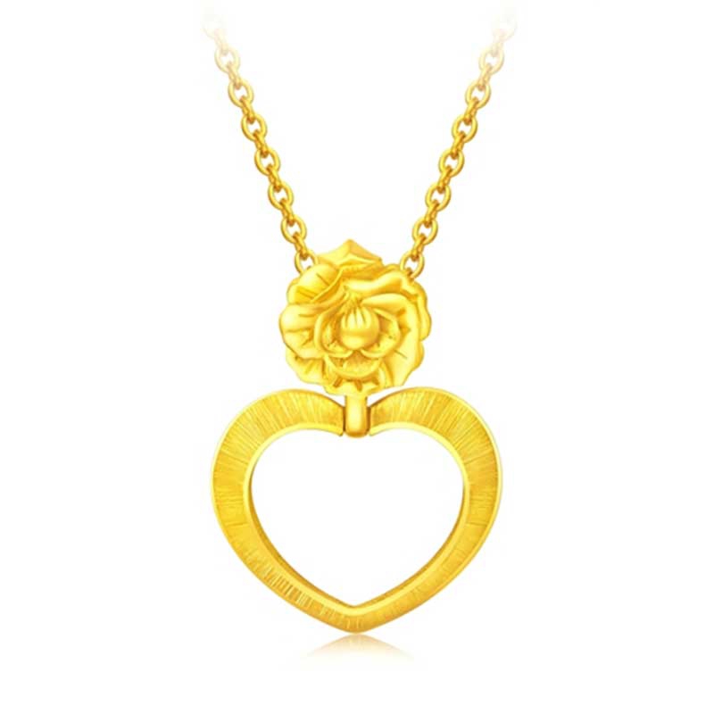 周大福 花月佳期系列 心形康乃馨 足金黄金吊坠F211624 足金 约3.50g