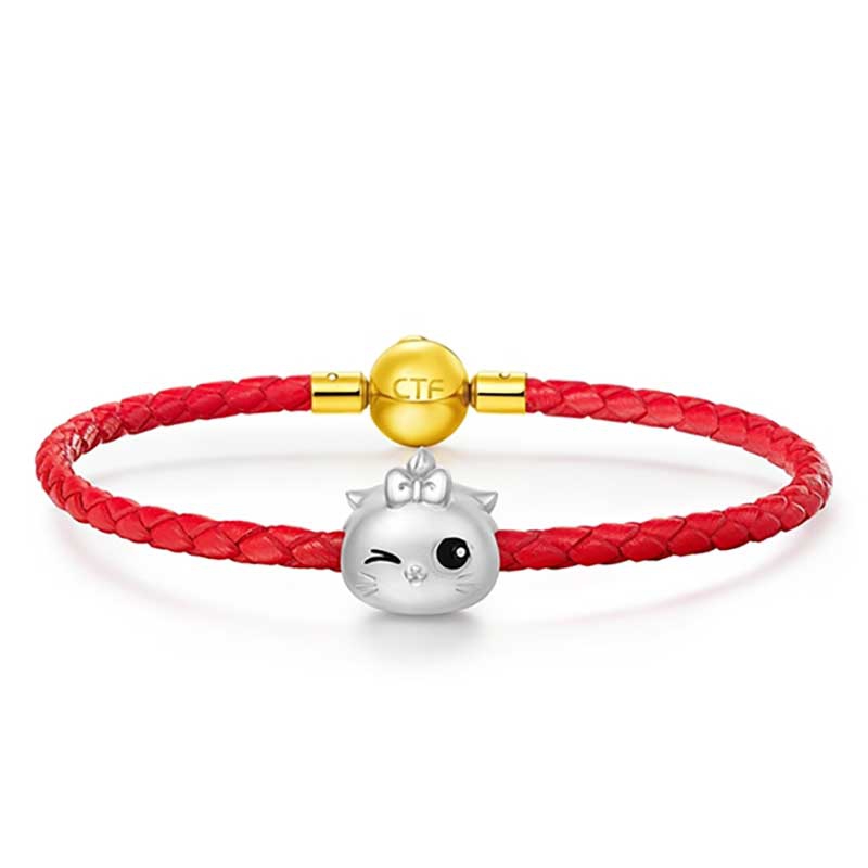 周大福 Q版可爱小猫 925银转运珠/吊坠AB39151 折耳猫