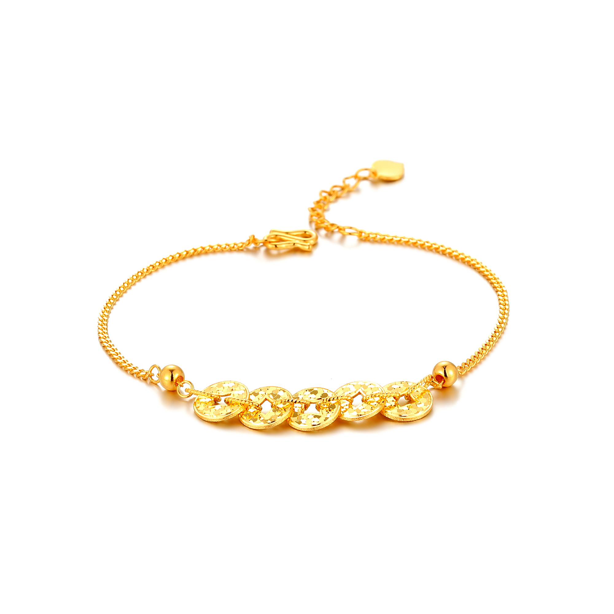 足金999 足金精品闪耀碎碎金复古铜钱时尚手链 约6.4g¥0.00