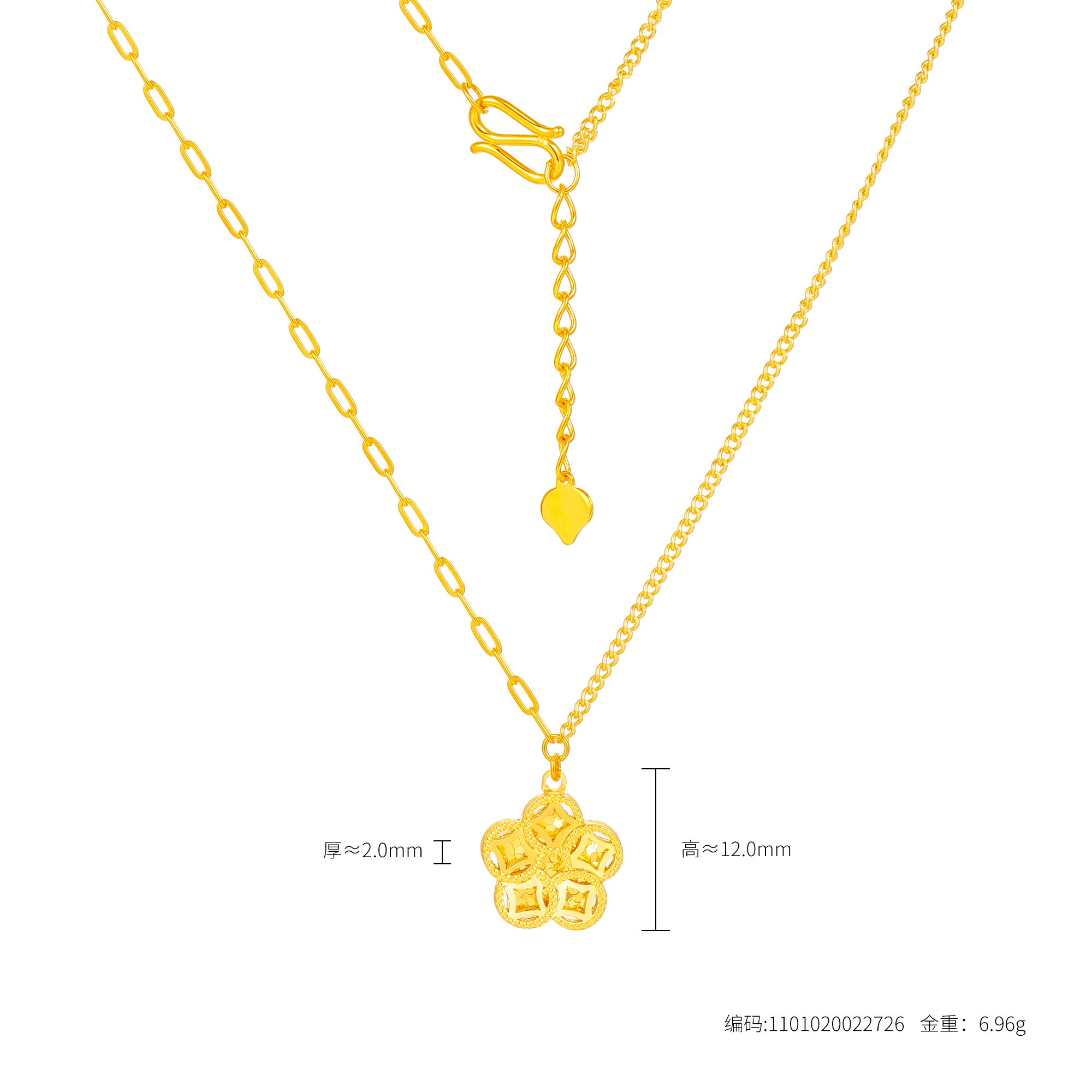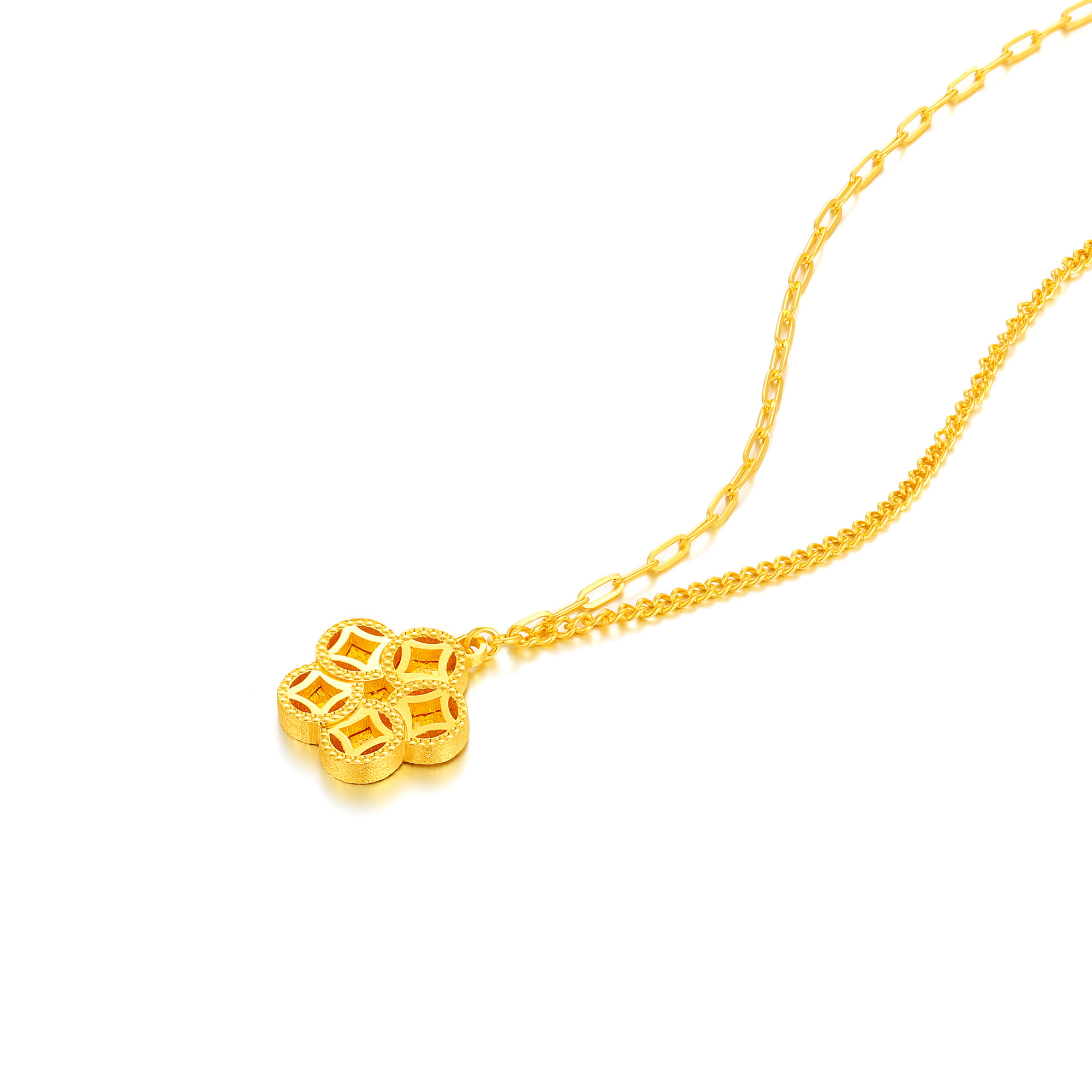 五帝币元素的黄金首饰承载着古老的帝王之气与财富的象征五帝币代表着五位皇帝的智慧与力量工艺师巧妙地将五帝币融入设计每一枚币的刻印精致而生动金光闪烁间散发着深厚的历史底蕴仿佛置身于千年王朝的荣耀之中“顺治”的“顺”寓意顺利遂心“康熙”的“康”寓意健康平安“雍正”的“雍”寓意富贵和仕途如意“乾隆”的“乾”寓意财富“嘉庆”的“嘉”寓意美好和谐既传承经典,又演绎现代奢华