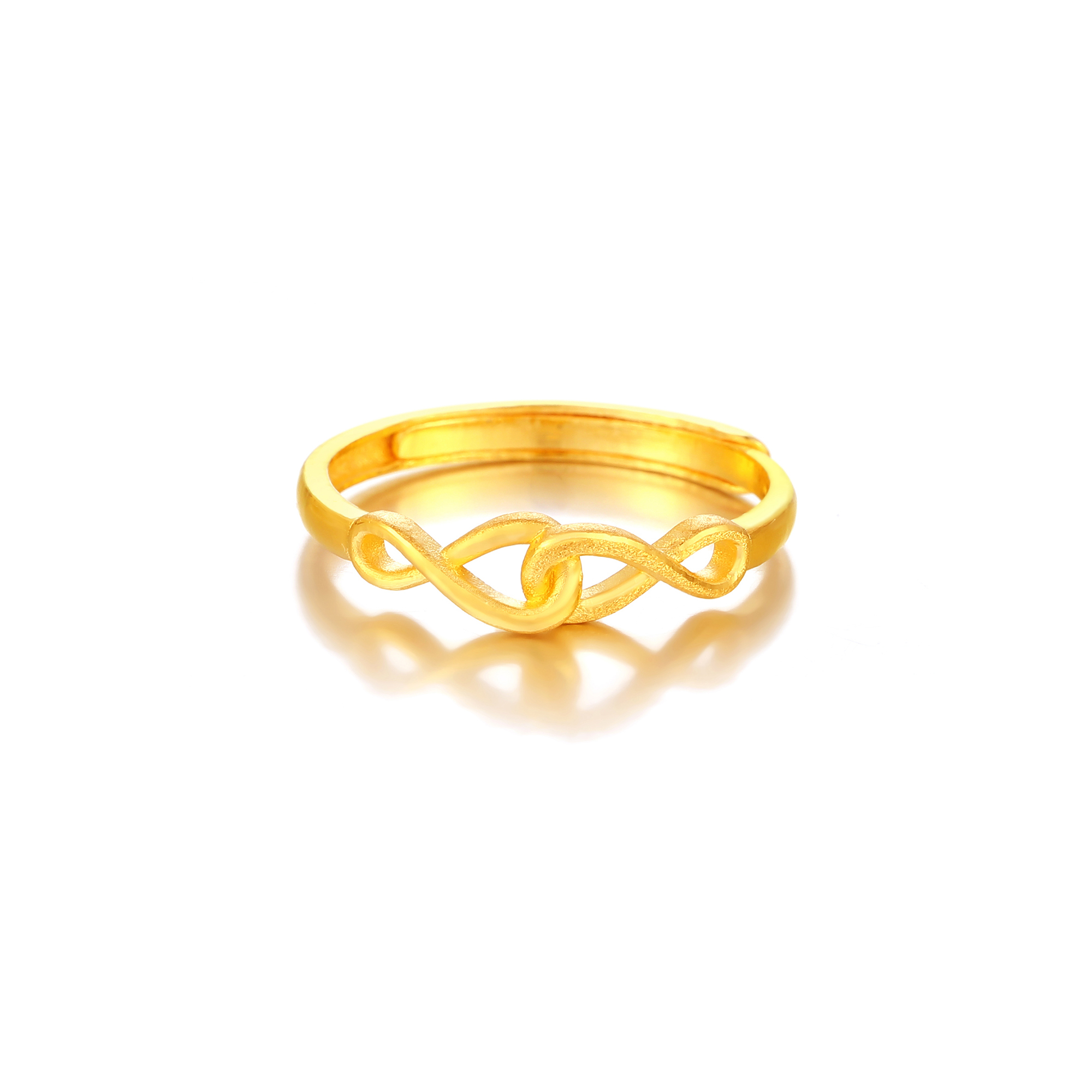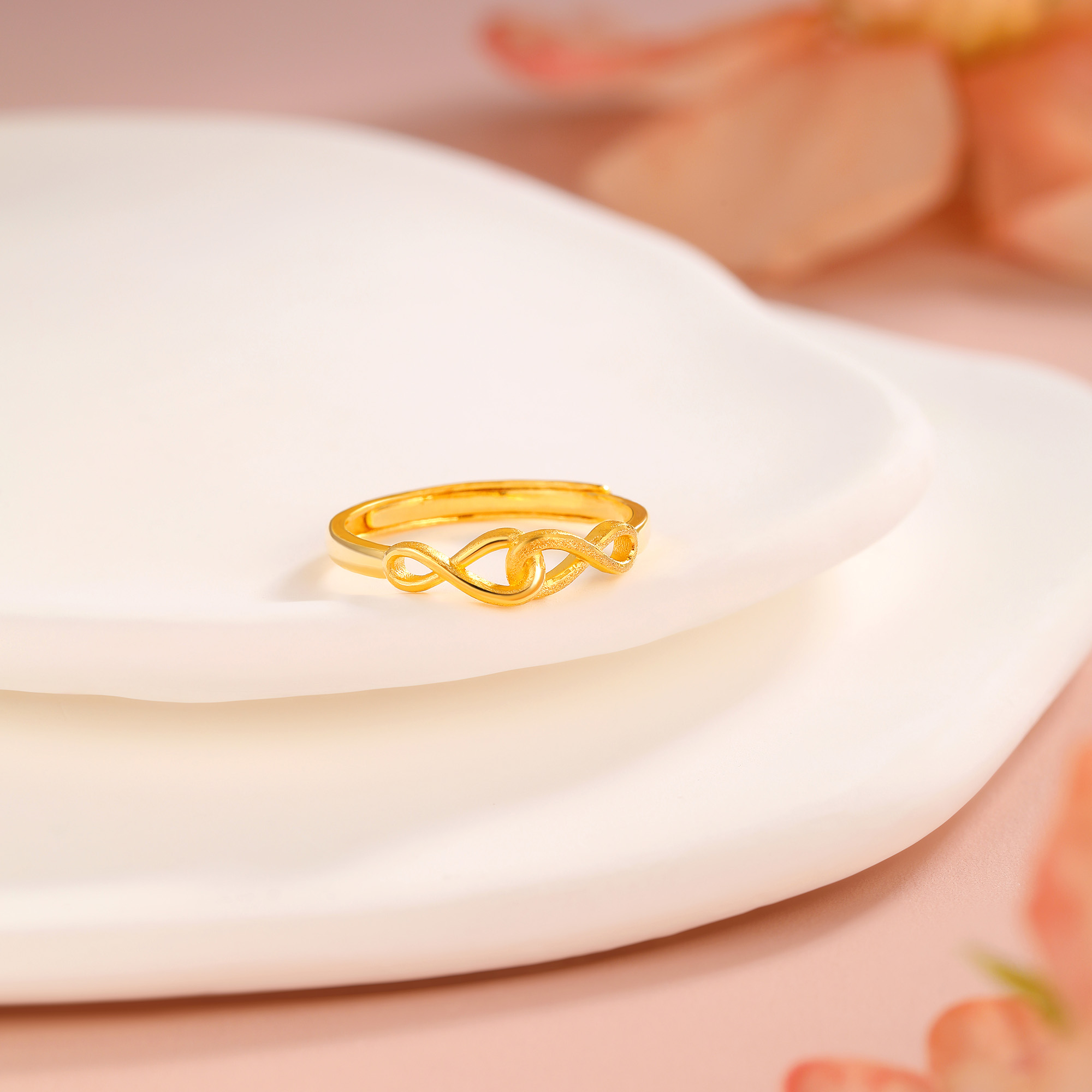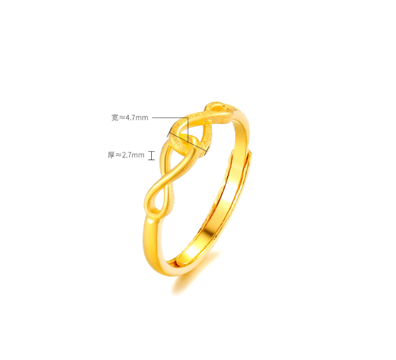 流畅线条勾勒出∞符号似时光缠绕的轨迹每一道曲线都泛着温润金芒藏着爱与美好永续的期许简约戒臂托住这份浪漫恰似生活里的小确幸以几何为语,将永恒期许融入日常让指尖永远住着温柔的地久天长