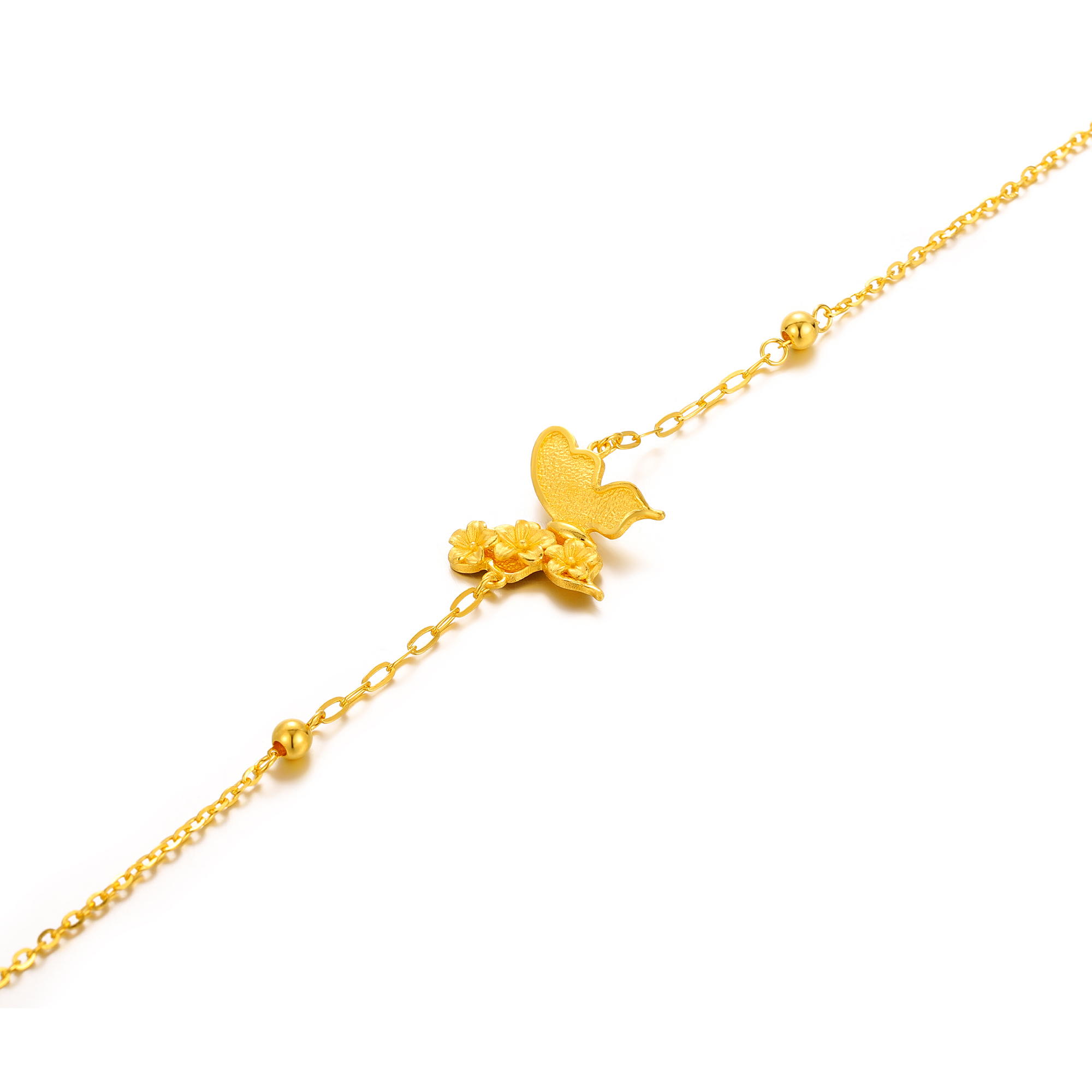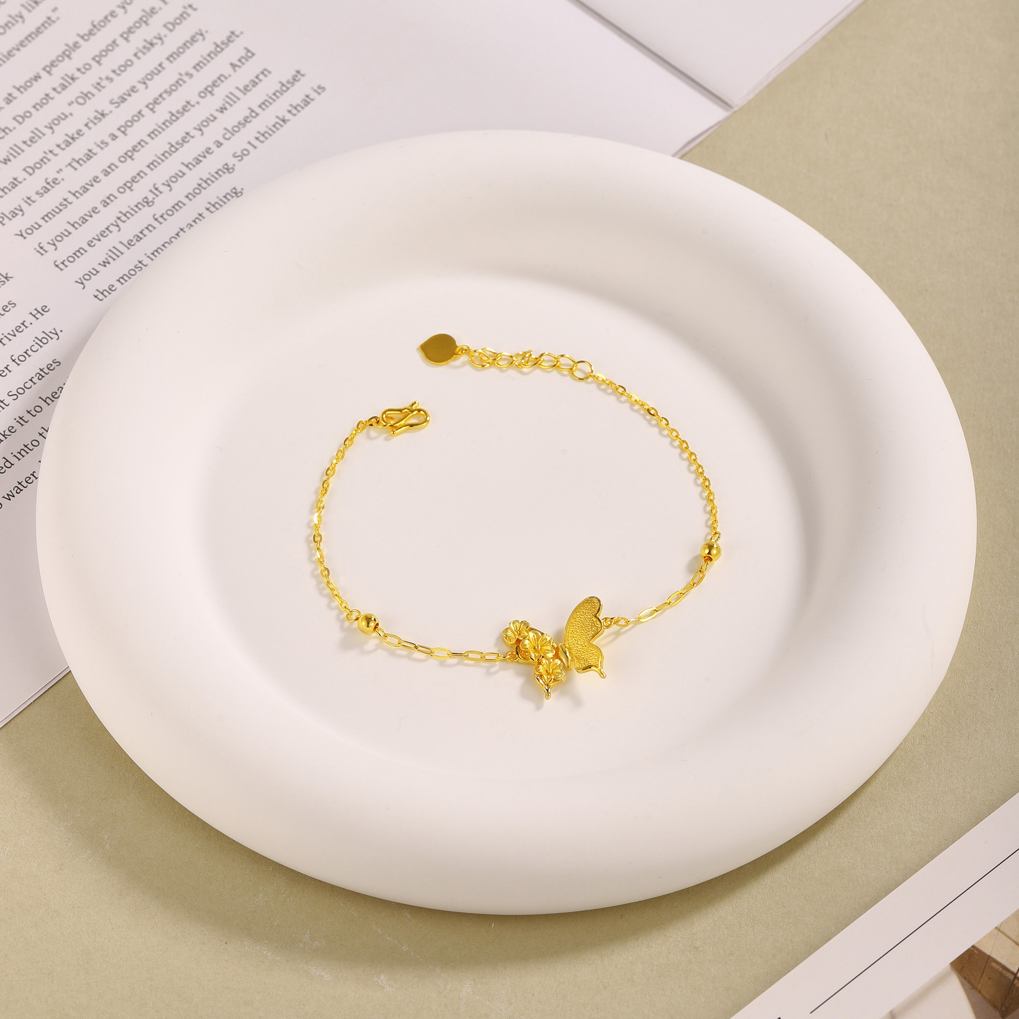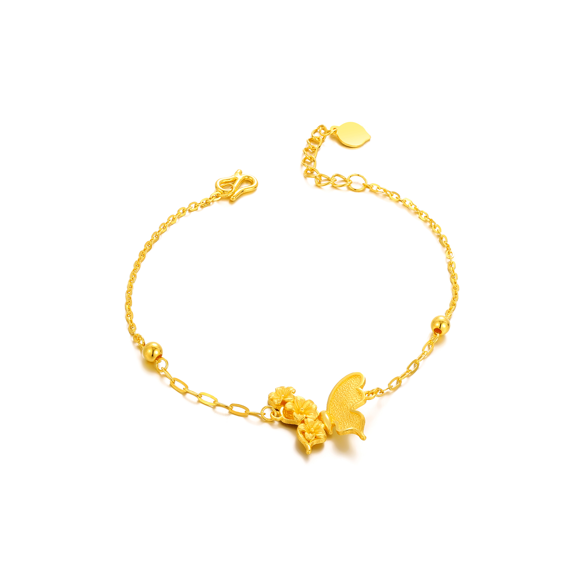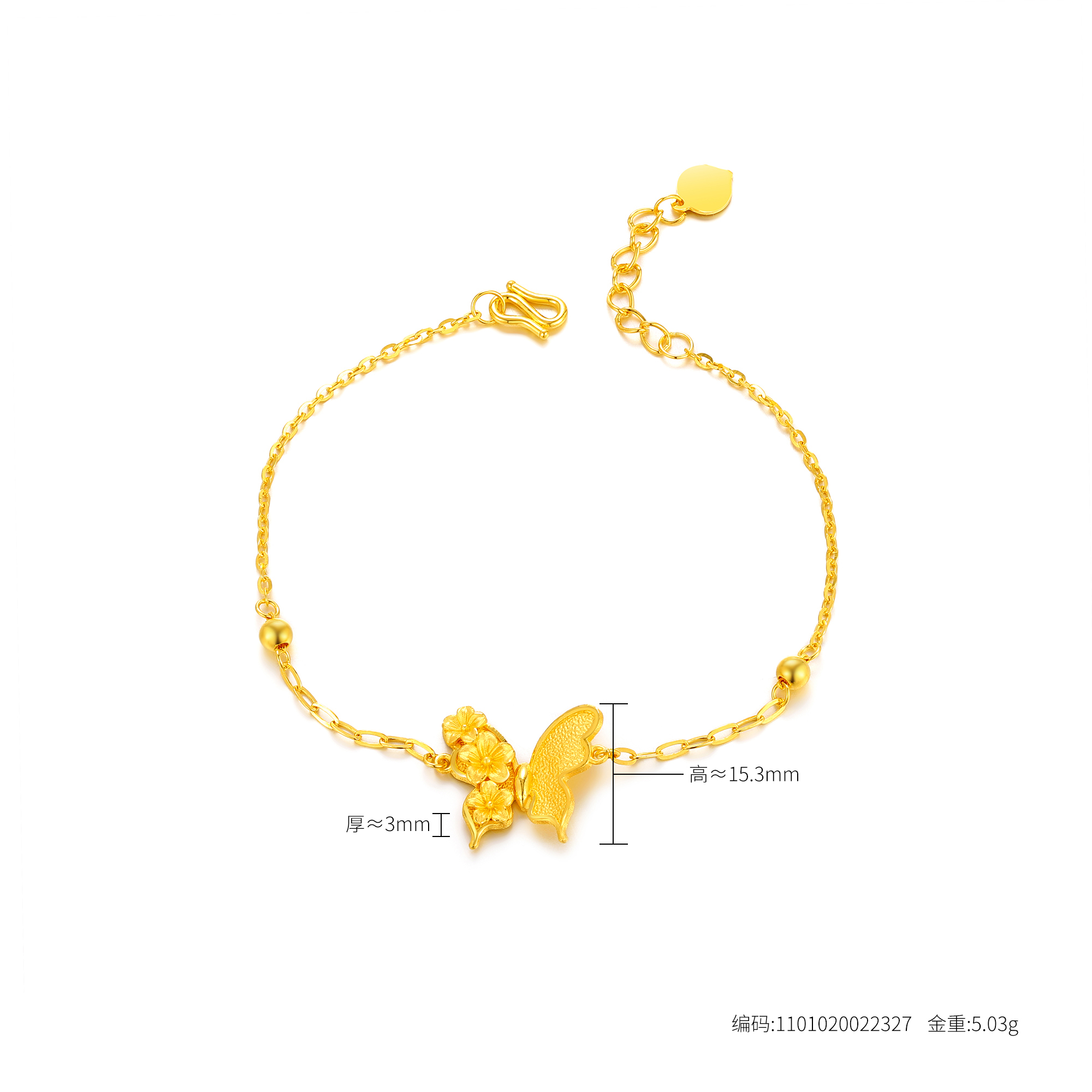 绽放的金色桃花与半边金色蝴蝶巧妙交织