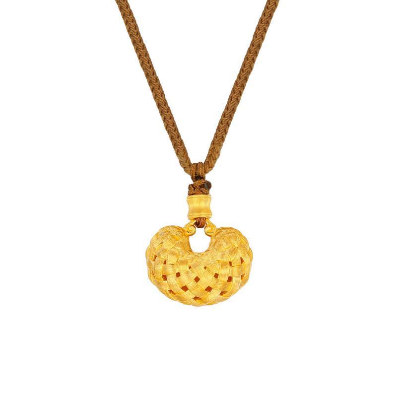 以古法工艺打造丝绒质感的如意锁包 金质温润,与编织肌理的通透感相映成趣 如意轮廓婉转灵动,承载万事顺遂的祈愿 锁包造型经典厚重,寓意锁住福运、护佑安康 编织纹连绵缠绕,象征福泽绵长、生生不息 吊坠饱满立体,尽显东方古韵的雅致格调 搭配素绳佩戴,适配日常与国风穿搭 是融匠心工艺与三重吉意的颈间臻品