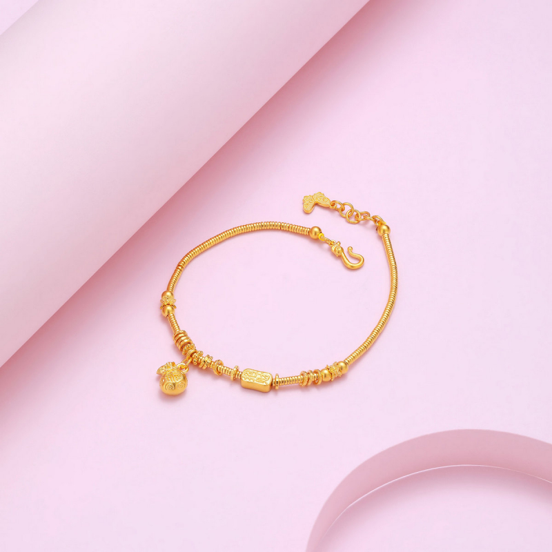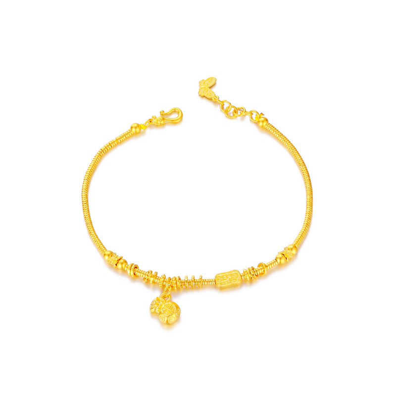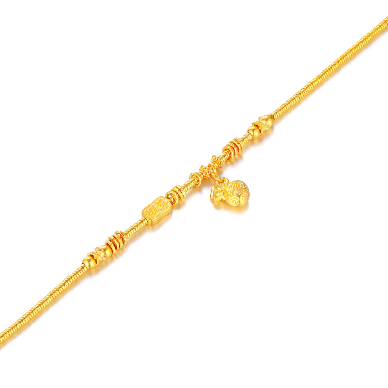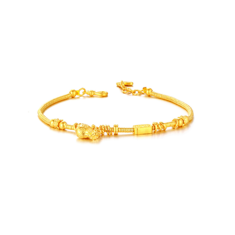 采用中国传统的古法工艺制成 色泽古朴,温润庄重 精雕细琢,凸显黄金细腻质感 佩戴黄金盘缠手串可以招来好运和幸福 让人事事顺心、如意吉 散发着迷人而璀璨的光芒 佩戴于腕,将福禄、财富、幸福紧紧系于身旁 尽显优雅品味与美好祈愿 质感十足,既显高级又不失优雅