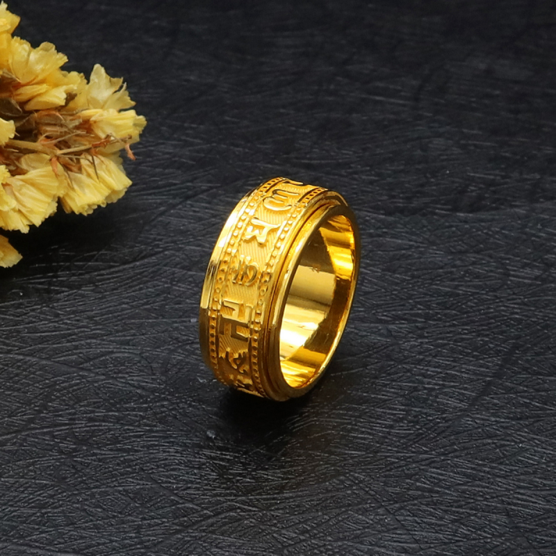 足金精品男戒最传统的元素造型设计用清晰的线条勾勒,有棱有角打造最符合男性的戒指设计搭配心经刻纹点缀使戒指整体更多了几分韵味