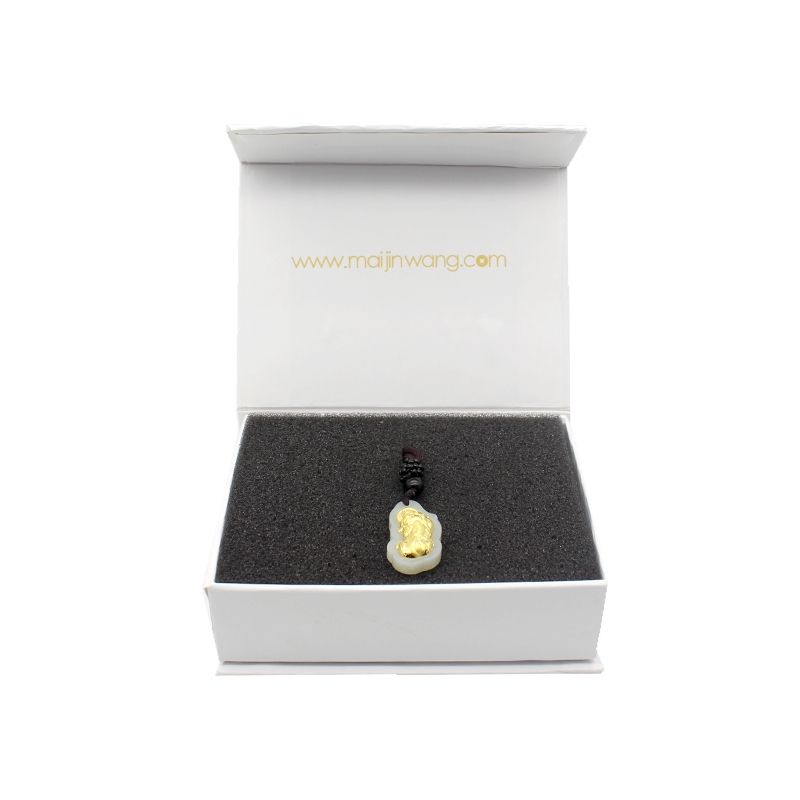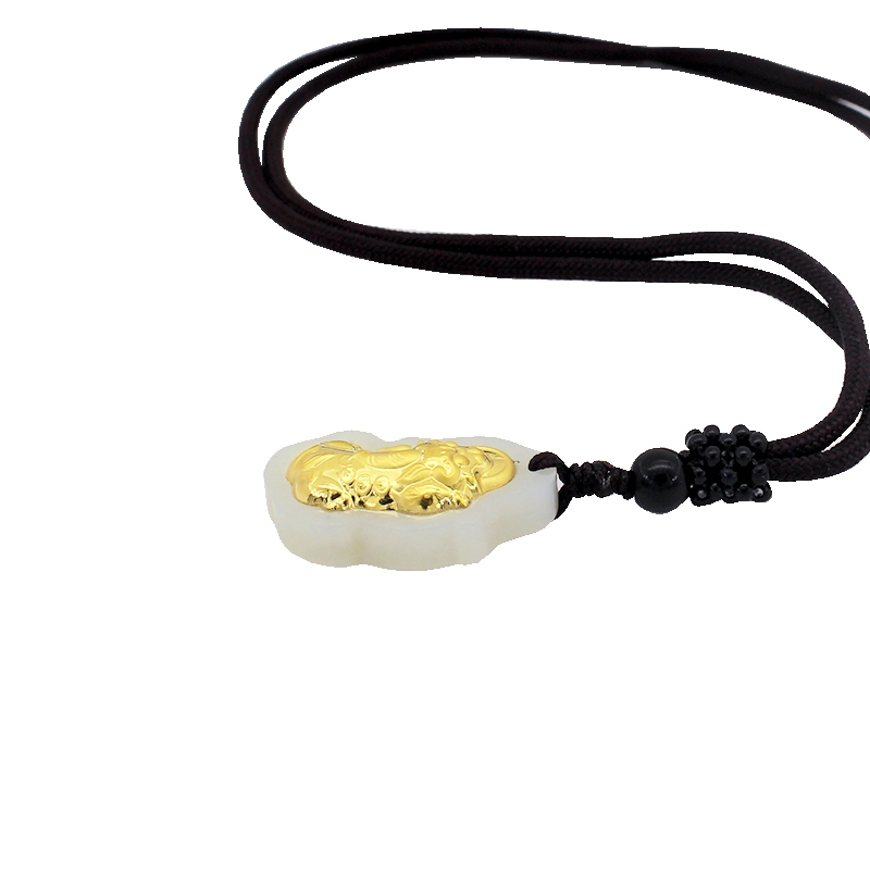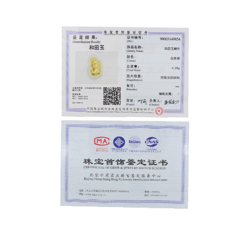 规格:4.00克左右尺寸:高:27.5mm 宽:17mm材质:和田玉 足金证书:送检证书精美配件:本产品配精美手工编织挂绳