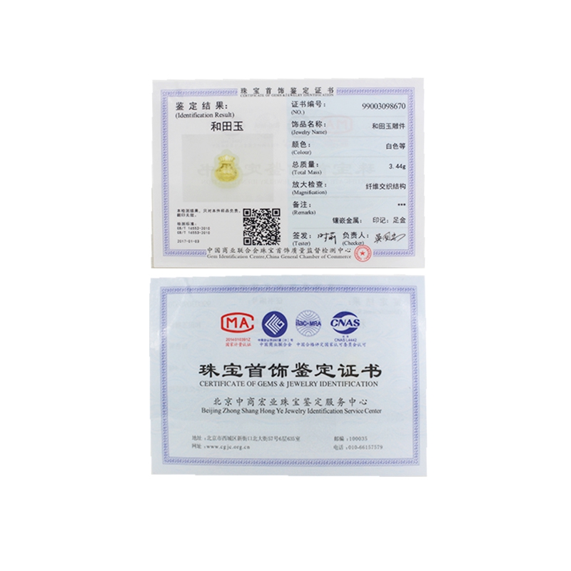 规格:3.10克左右尺寸:高:21mm 宽:16mm材质:和田玉 足金证书:送检证书精美配件:本产品配精美手工编织挂绳。