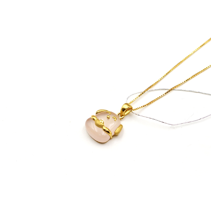规格:金重:约1.2克、石重:约1.1克、总重:约2.4克尺寸:最宽:12.9mm、最高:22.0mm、最厚:6.2mm材质:足金、玉髓证书:鉴定证书