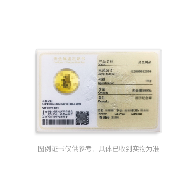 规格:10克尺寸:40mm*20mm材质:Au.9999证书:生产证书
