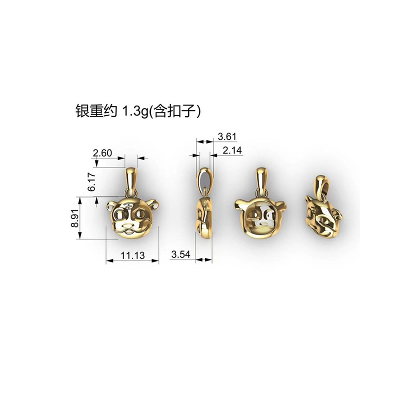 此款产品不配链足金1.5g尺寸1.5*1.0cm内珠可动