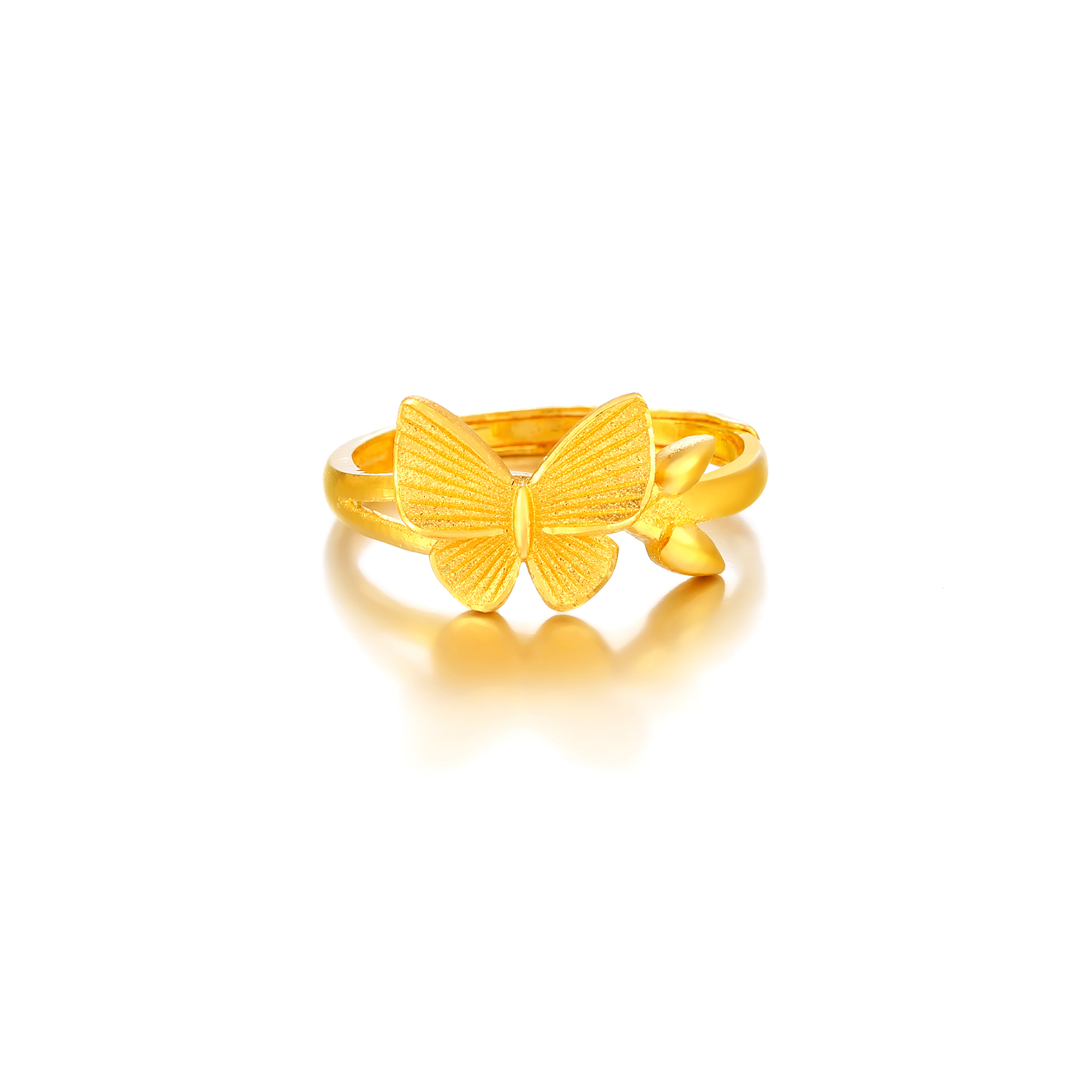 足金精品灵动蝴蝶清新时尚戒指 约3.1g